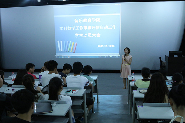 为保证2016年beat365正版唯一官网本科教学工作审核评估顺利开展,根据《beat365正版唯一官网本科教学工作审核评估工作方案》的文件要求,音乐教育学院召开本科教学审核评估启动工作全体学生动员大会。此次动员大会分多个场次,分别在南湖校区、相思湖校区召开。
